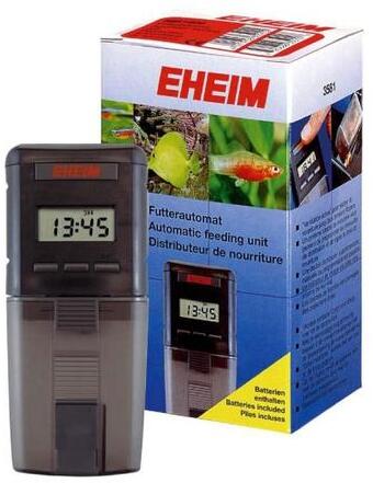 Az Eheim automata etető akár napi 4 etetést tesz lehetővé, elektronikus programvezérléssel, választható dupla eledelkiadással. Manuális kioldása lehetséges egy funkciós gomb segítségével, levegőztető csatlakoztatási lehetőség a táp összetapadása ellen. Automatikus kikapcsolás, elemek töltöttségét figyelő rendszerrel.